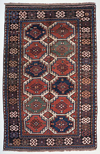 イランとアゼルバイジャンとの国境に位置する丘陵地帯のモーガンで織られた絨毯。鍵状の文様をいたる所に配する所謂メムリンクである。フランドルで15世紀ルネサンス期に活躍したハンス・メムリンク(1433頃~1494)の絵画にこのタイプの絨毯が描かれることから、このように称されるようになった。